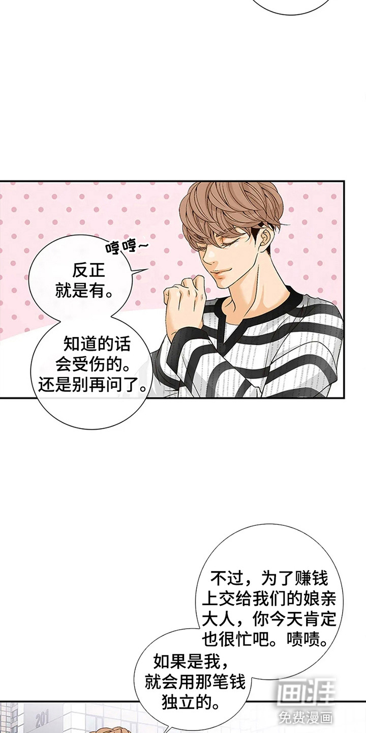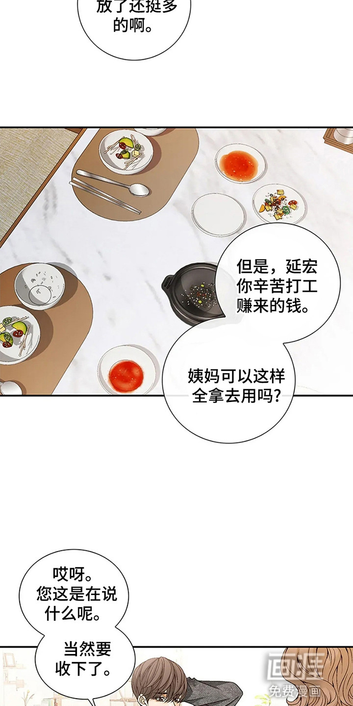 延宏因为幼时的事故变得孤身一人,之后他的姨妈一家收留了他。于是他在姨妈家住到了成年。虽然他会在外兼职付生活费,但是终究寄人篱下。这天他和往常一样在兼职,接到了姨妈儿子的求救电话。延宏了才发现那是个酒店房间,床上还躺着一个漂亮的和的男人……