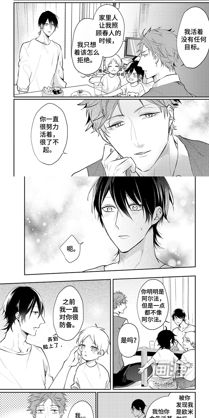 宫矢某次在幼儿园接孩子的时候意外遇见公司的精英北城也在接孩子并得知他是欧米伽的事实,惊奇不已的他开始把越来越多的关注集中在北城身上并产生了特殊的感情...