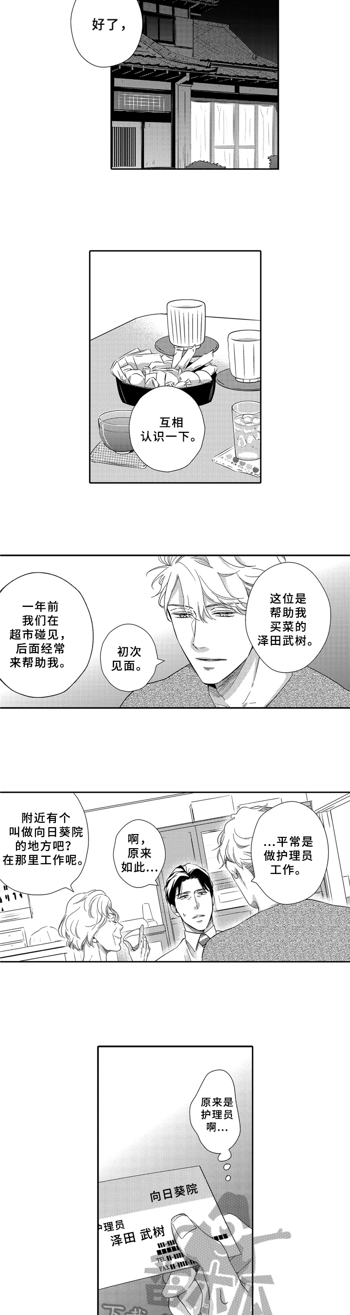 一次意外阿贝友五认识了经常照顾自己母亲的护理员泽田武树,憧憬泽田武树的温暖,后来相处中渐渐喜欢上他。