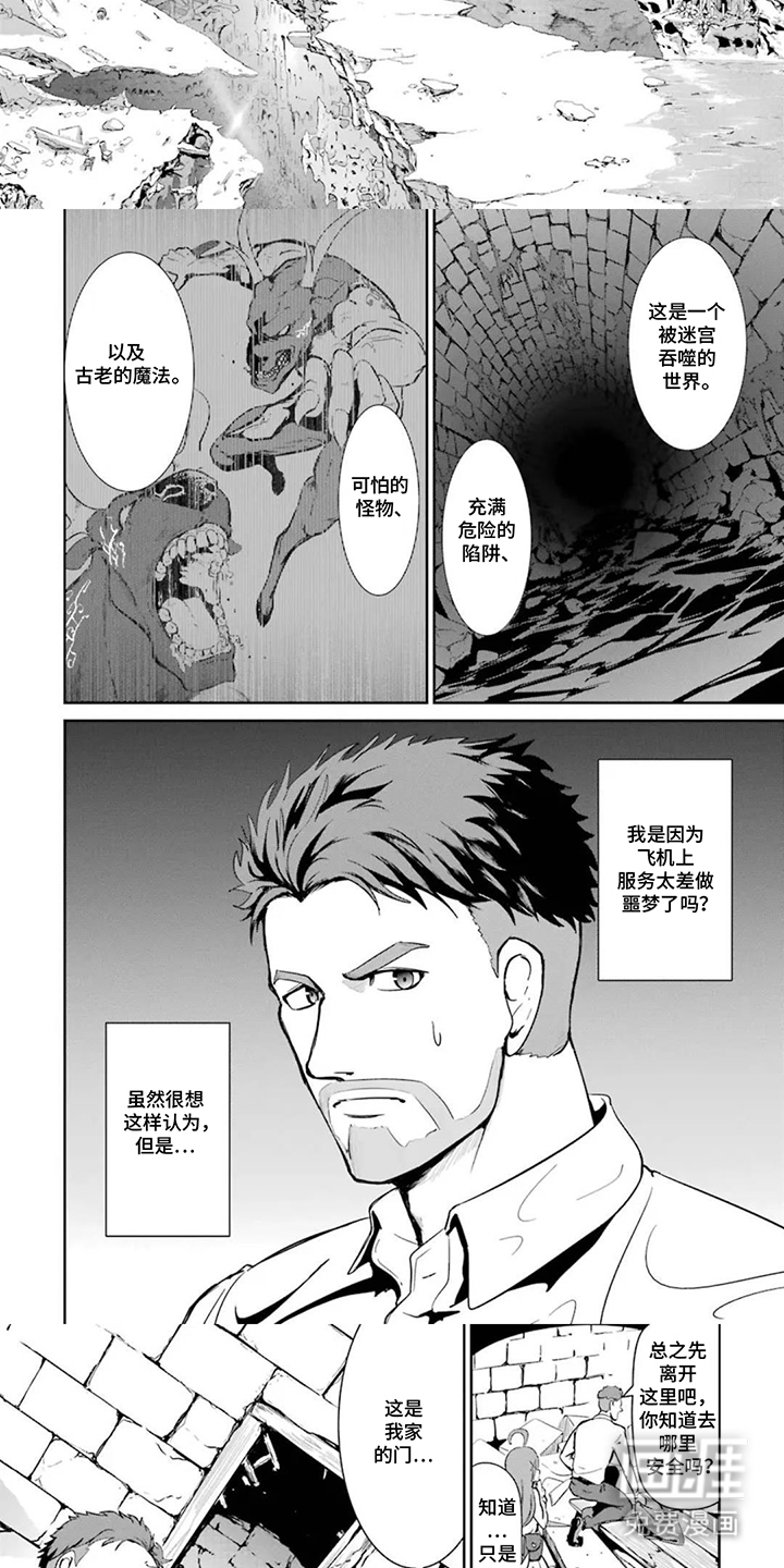 羽田机场的灯光还在头顶闪烁,地面突然裂开——安藤·加雷特·大河坠落时,耳边只有风的嘶吼和行李翻滚的闷响。他跌进一个叫“百万迷宫”的地方。走廊无尽,房间复制着房间,墙壁吸走所有回声。怪物从暗处扑来,人类的尖叫被咀嚼声吞没。 在一片废墟中,他找到了瑞穗——少女浑身是血,眼神却还亮着。他撕下衣袖替她包扎,听见她低声说:王国已经没了。迷宫风暴吞噬了一切,国王、造陆者、军队……都成了怪物的粮食。